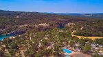 Located to the west of the Lac de Sainte Croix and the Gorges du Verdon, Côteau de la Marine is a well equipped site with a fine setting. The site is a member of the Tohapi group and has direct access to the River Verdon and its own small harbour. There are just 21 touring pitches (60-120 sq.m), mostly with electrical connections (10A). These are situated at the bottom end of the site overlooking the river but it is quite a steep climb up to the main site facilities. There is plenty of activity in high season, with a club for children and various competitions and tournaments. There is a large swimming pool and a separate children’s pool. The adjacent watersports centre has canoe and electric boat hire.