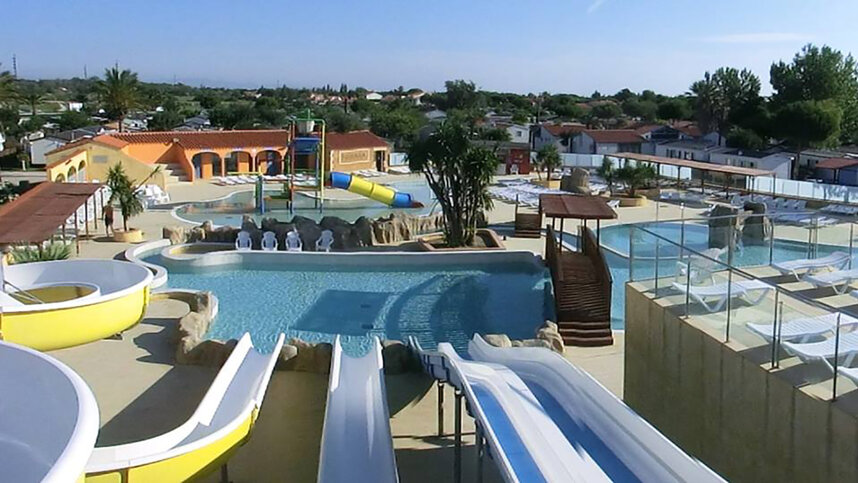 Camping le Soleil de la Méditerranée in Saint Cyprien, just 1km from a long sandy beach, is an ideal base for exploring the Pyrénées-Orientales area of sun, beach and blue waters. The site has 50 touring pitches available which are grassy, measure between 60 and 100 sq.m., have access to electricity and some have shade and flowering borders. There is also accommodation to rent on site. A large outdoor and indoor swimming pool complex with water slides and a Hammam is a great way to entertain the kids and satisfy the parents who want to relax. There is a bar with a restaurant serving excellent food either inside or outside on a large terrace and entertainment is provided a few nights a week and during the day in high season. Sports activities include tournaments in high season and cover beach volleyball, beach football, waterpolo and petanque and you'll find bicycle hire and classes in aqua-aerobics and Zumba on site too.