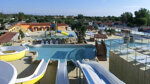 Heated toilet and shower facilities with child and accessible facilities. Laundry facilities. Grocery shop. Hair and beauty salon offering massage and solarium. Bar with restaurant and terrace plus snacks and takeaway. Kid's club. Children's playground. Waterpark with indoor and outdoor pools and waterslides. Hammam. Jacuzzi. Dogs welcome. Games room with TV. Beach volleyball. Beach football. Waterpolo. Petanque. Bicycle hire. Aqua-aerobics. Zumba. Beach 1km and site runs land train shuttle.