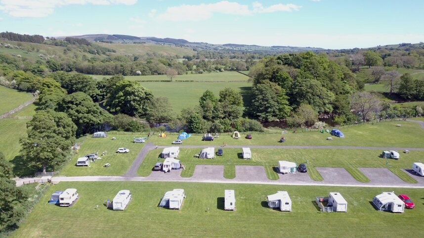 Single heated shower block (fee payable) wash basins & WC’s. Hairdryer electric points. Accessible toilet and shower. Washing up area. Chemical toilet disposal. Freezer. On-site shop. Half-size football goal posts. Fire pits for hire. Pets allowed. Free fishing on the River Tees, (rod licence required). Dog walking areas. Winter storage. Store & Pitch. Wi-fi. Daily pizza delivery. BBQ’s 40cm from the ground are allowed. Disposable BBQ’s not allowed. Earliest arrival time 1.30pm.