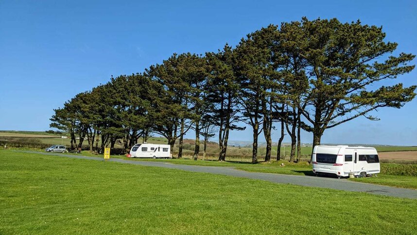 Previously known as Redlands Touring Caravan & Camping Park, Little Haven Retreat is a peaceful, family run site is located in the heart of the Pembrokeshire countryside, close to many lovely sandy beaches. Little Haven takes around 80 touring units in three areas divided by banks topped with pine trees, 32 hardstandings and 69 with 10A electricity. The first two areas take 60 caravans or motorhomes and includes the 32 hardstandings, the third takes 19 tents on a level grassy meadow. There are fine sea views across rolling countryside to Saint Brides Bay. The newly renovated reception has a small shop. Breathable groundsheets should be used. American RVs – advance booking only. A sandy beach and the Pembrokeshire Coastal Path are 1.5 miles away.