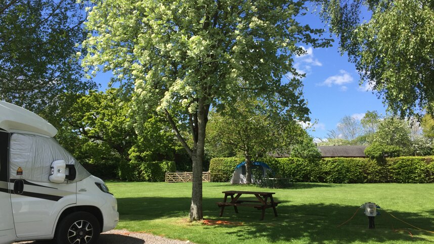 Pamela and Alan Walton are really enthusiastic about their small, beautifully kept, adults-only park in the Somerset village of Sparkford where they will make you most welcome. This level, landscaped site is surrounded by attractive beech hedging, silver birch and many other ornamental trees and the park has a relaxed, comfortable feel. It provides 50 touring pitches for all types of units (max. 12 m) with 16A electricity hook-ups (32A on request), 25 pitches with hardstanding, 12 being fully serviced and some extra long with grass lawns at the side, and the entrance has been widened for easier access. Part of the park is being developed with holiday lodges for private ownership or rent, and in 2022 the brand new lodge specially designed with accessible facilities. American-style motorhomes are welcome.