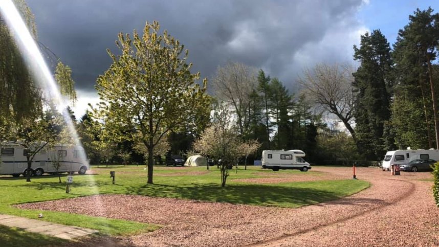 You will receive a warm welcome at this small, family run park. It is situated beside the A7, a major road into Edinburgh, and the entrance is through a disused but very grand railway viaduct which crosses one side. The park is level with hardstanding and grass pitches, 45 of which are for touring. The central area is grassed with some electrical points (long leads useful for some) and newly planted trees. A key controls access to the park and the sanitary facilities. There are several picnic tables for visitors to use and tall trees and shrubs provide a green perimeter. At times there can be considerable noise from a nearby road.