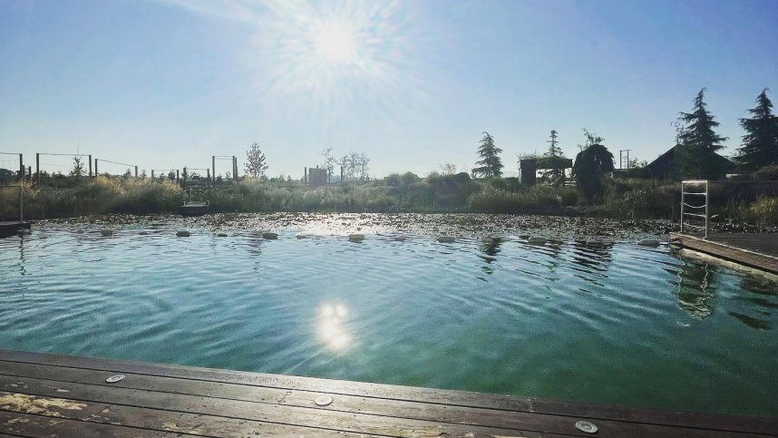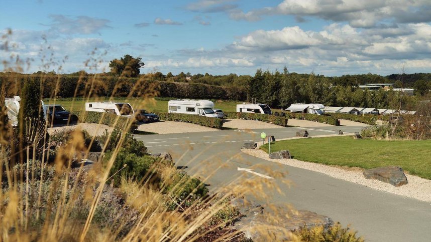 A single toilet block provides facilities for visitors. Accessible sanitary facilities and showers. Wash basins. Laundry. Dishwashing area. Pets allowed. Dog walk adjacent. Chemical toilet point. Motorhome service point. Gas sales. WiFi is good, charged. The TV reception is good. Restaurant. Outdoor yoga. Pilates studio. Gym. Wellness centre. Small shop. Coffee shop. Pizzeria. Outoor barbecues and cooking fire pits. Jogging and walking paths and even barefoot trails. Adventure playground for children. On-site fishing. Natural swimming pool. Heated outdoor hot springs. Late-night arrivals area. Co-op 1.5 miles. Bus stop 600 metres. Train station 3 miles. The earliest arrival time is 13.00.