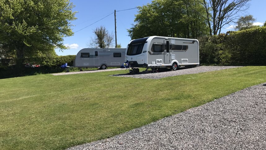 Lowtrow Cross is a small, adults only park situated just inside Exmoor National Park and is ideal for owners of well behaved dogs. It is quietly located on a hillside giving lovely views north towards the Brendon Hills. There are 28 mixed pitches, four occupied by caravan holiday homes (two for hire) and six seasonal, and all the remaining touring pitches are hardstanding with grass surround, with 16A electricity and TV socket. An adjacent meadow with stunning views over the rolling countryside can be used for tents. Although there is no bar or restaurant on site there is Lowtrow Cross Inn at the gate with local cask beers and excellent food.