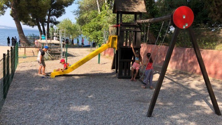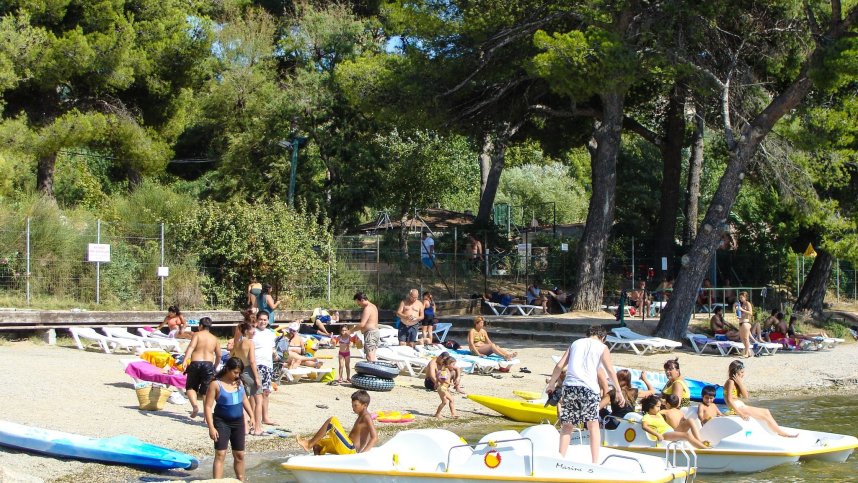 Three dated sanitary blocks. Laundry and dishwashing area. Bar. Restaurant. Large shop. TV and games room. Play area. Pétanque. Comprehensive adult entertainment and children’s animation programmes. Archery. Rifle range. Zoo. Small fairground and circus. Camel and pony rides. Small train around site. Open-air theatre. Pedalos. Windsurfing. Canoeing. Charcoal barbecues are not allowed. Animals are not accepted. Free WiFi.
