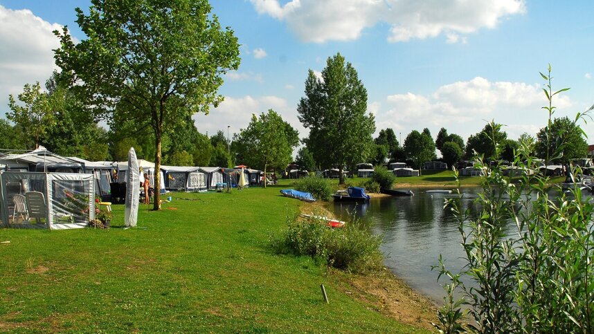 MarinaPark Bad Nederrijn is a beautifully landscaped site with many fruit trees and a large marina. The 50 level touring pitches are spacious and sunny, with those close to the dyke being particularly spacious (up to 120 sq.m). All the pitches have 6A electricity and many great views over the lake. There are four sanitary buildings of which one is new, this one being located near the entrance and reception. All the buildings are heated, tiled and well maintained. This site is good for fishing and ideal for watersports enthusiasts as you can moor your own boat here. Boat hire is available within 2 km.