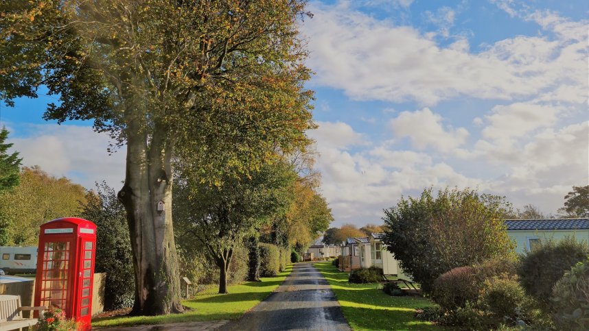 Screened from the touring area by a high fence so that they are not visually intrusive are 175 privately owned holiday homes. A purpose-built log cabin houses reception and a shop which sells basic supplies. Although there are passing places, the approach road to the park is narrow, so care should be taken.