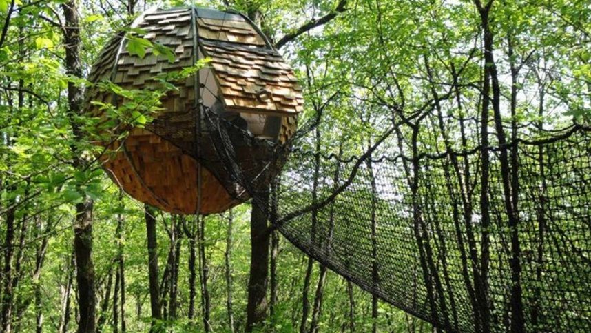 Moulin de la Jarousse is in the Périgord Vert Regional Park covering 15 hectares of hilly forest, ponds and meadows. The accommodation includes the Gîtes de Clément, a restored farmhouse with its own private swimming pool and meadow, attractive log cabins located in the forest overlooking the lake and yurts in an open meadow. Scattered around the site are some tree houses accessed via scramble nets or rope bridges. Most of these have few facilities and are a long way from the toilet blocks. Please note that there are no touring pitches here. The site is unsuitable for campers with walking difficulties and torches are essential.