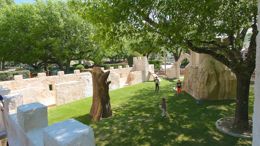 Camping Nature Parc l’Ardéchois is a very high-quality, family-run site within walking distance of the amenities of Vallon-Pont-d’Arc. It borders the River Ardèche, and hugely popular canoe trips are run directly from the site. The campsite is just 4 km from the famous Pont-d’Arc, a huge limestone arch spanning the river, and its river beach. A drive along the gorge is a must, with spectacular viewpoints.