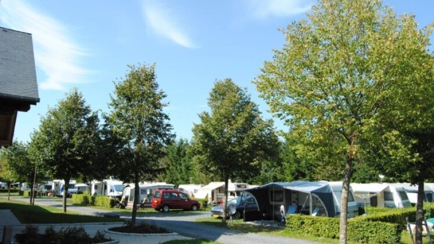 Take the N15 from Deikirch to Heiderscheid. Site is on right at top of hill just before reaching the village – check in at Fuussekaul on left.