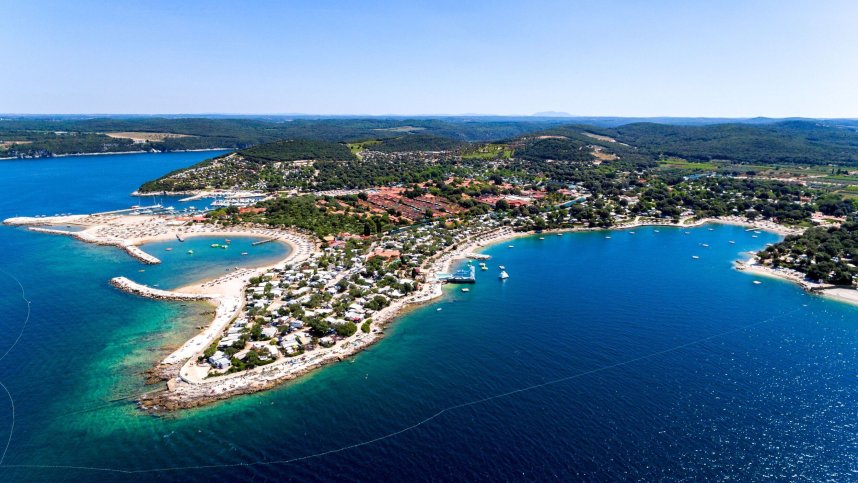 Site is on coast 7 km. north of Rovinj. If approaching from north turn inland (follow signs to Rovinj) to drive around the Limski Kanal. Then follow signs towards Valalta 2 km. east of Rovinj. Site is at end of road and is well signed.