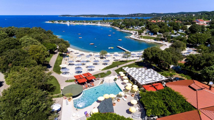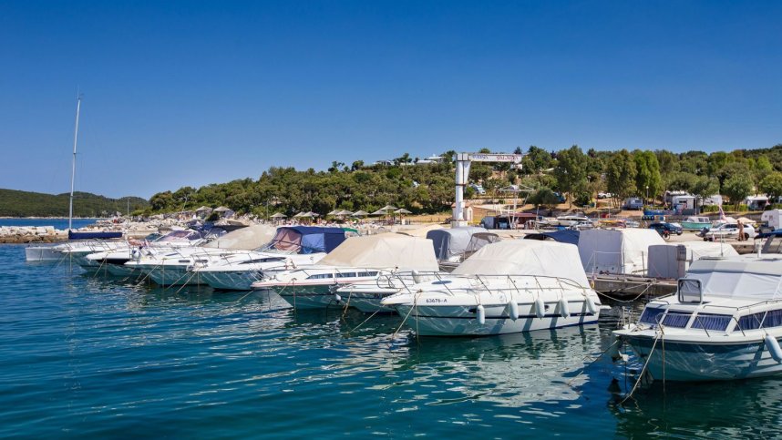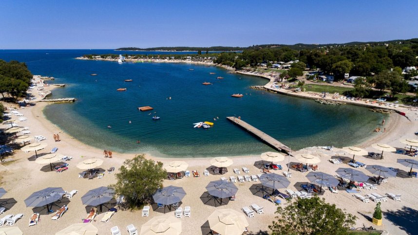 Unusually for Croatia, the beach has soft sand (with some help from imported sand). All manner of sports are available and a marina forms part of the site. The high standard here and throughout the campsite has ensured that customers have returned regularly since its opening in 1968. We were impressed by this well ordered and smart naturist site.