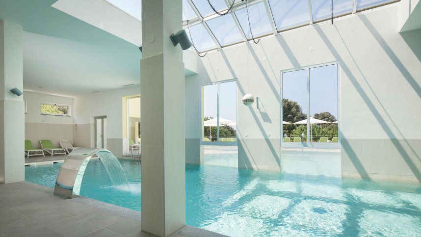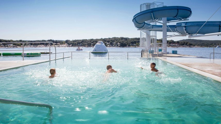 Twenty very high quality new or refurbished sanitary blocks. Hot showers. Accessible sanitary facilities. Washing machines. Supermarket. Three restaurants (one specialising in seafood). grill snack, pizzeria, Copacabana bar and Pool bar (own brewery) , Large lagoon-style outdoor pool complex (01/05-30/09). Indoor heated pool (01/05-30/09). Saunas. Whirlpools. Hairdressers. Beauty salon. Fitness club. Massage. Minigolf. Tennis. Sailing. Play area. Bicycle hire. Bicycle service station, Beach volleyball. Marina with full services. Internet. Entertainment all season. Kindergarten. Medical clinic. Special textile area for children. Free WiFi throughout. Dogs are not accepted. Four Free E.V. Charging stations (Charging power 22 kW. Connector Type 2 Mennekes).