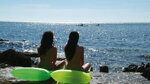 This island also has its own restaurant and two toilet blocks. The pitches are of average size on grass and gravel ground and slightly sloping. Pitches on the mainland are numbered and partly terraced beneath mature pine and olive trees, some with sea views available. Pitches on the island are unmarked and have shade from mature trees. Between the island and the mainland is an enclosed, shallow section of water for swimming. A long beach surrounds the site, part sand, partly paved.