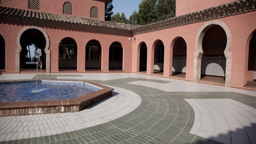 El Templo del Sol is a large, luxurious, terraced naturist site with a distinctly Arabesque feel and superb buildings in Moorish style. The owner has designed the magnificent main turreted building at the entrance with fountains and elaborate Moorish arches.