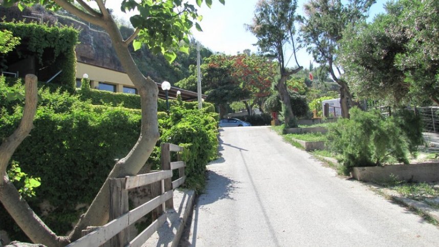 From A29 Castellammare del Golfo exit follow directions to town. The S187 that runs parallel to but further north than the motorway diverges into the east side of town but may be poorly signed. Site is off this road but is well signed from town. Sharp narrow entrance unsuitable for large units. If turning left into site, continue past and turn around.