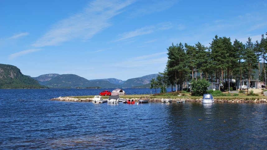 The campsite has a range of activities to keep you busy, and the excellent hardstandings for motorhomes look out onto the lake. Byglandsfjord offers good fishing (mainly trout) and the area has marked trails for cycling, riding or walking in an area famous for its minerals. Samples of these can be found in reception, and day trips to specialist exhibitions at the Mineralparken (8 km) are possible. Walking and cycling routes abound and cycles and mountain bikes can be hired from Neset.