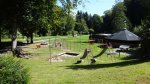 Two heated sanitary blocks for touring units, have free showers, baby changing and accessible facilities. Laundry facilities. Motorhome services. Gas supplies. Shop. Good restaurant, bar and takeaway. Swimming pool (20x9 m). Playground. Minigolf. Trampoline. Boules. Bicycle hire. WiFi over site (charged). Maps for ramblers available in reception.