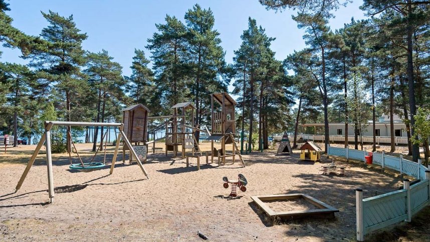 Camping Oknö lies between the Swedish mainland and the island of Öland on an archipelago approximately 5 km. from the town of Mönsterås. A single road leads to the site, which is surrounded by coves, forest trails and meadows. The campsite and nearby beaches are sheltered from the winds and waves, making the area well suited for boating, fishing and bathing. There are 155 slightly sloping, patchy grass pitches, randomly arranged with 93 for touring, all with electricity (10-16A), some with their own sanitary facility and all with varying amounts of shade from tall trees. Some have good views over the coastal area.