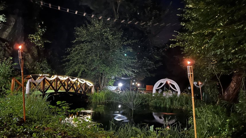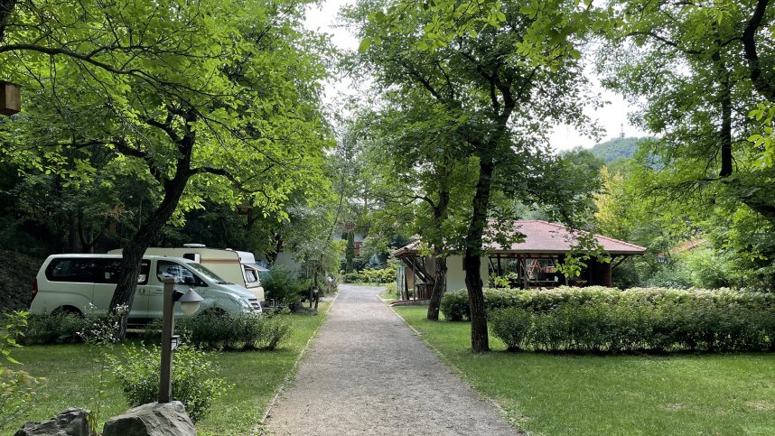 Öko-Park Camping is close to the Baroque style town of Eger, on the edge of the protected Bükk National Park. Buildings on the site are all made of natural materials and there is a well used for watering the plants. Öko-Park has 45 pitches off a single gravel access lane that runs to the back of the site. The grass pitches are level, marked and numbered. All have 16A electricity and are in the shade of mature trees. There is a small adventure park on site with climbing wall, tree-path and waterfall. The disadvantages are a road running alongside, a railway to the back and pitches which may be small for larger units.