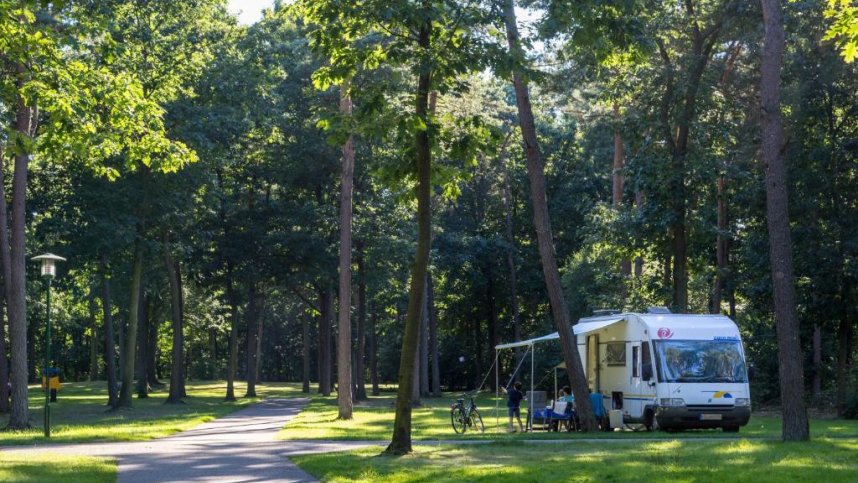 Vakantiepark Arnhem is a wooded site in the Veluwe region of the Netherlands, close to the Hoge Veluwe National Park. The 750 pitches are partly in the sun and partly in the shade of tall trees and there are 500 for touring units, some with hardstanding. This is a perfect base for visiting the national park, the Kröller-Müller museum or the outdoor museum. You could also go riding or play golf nearby, or experience the silence high up in the air in a glider from Terlet airport. There is also plenty to do on the site including tennis and minigolf. Expect some road noise from the motorway to the east of the site.