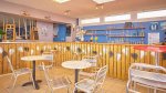 One toilet block is closed and the other two have been partly refurbished to provide WCs including hot showers and washbasins. Accessible facilities, Washing machines and dryers. Friendly reception with small shop and bar. Takeaway. Play area. Games room, Entertainment and activity programme (July/Aug). WiFi over site (charged). Mobile homes to rent.