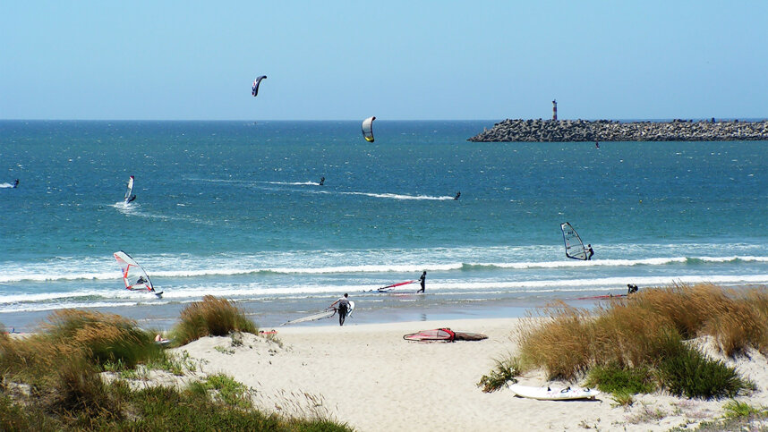 On N13 coast road driving north to south drive through Viana do Castelo and over estuary bridge. Turn immediately right off N13 towards Cabedelo and the sea. Site is the third campsite signed, the other two are not recommended.