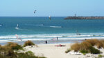 This site in northern Portugal is worth considering as it has the advantage of direct access, via a gate in the fence (locked at night), to a large and excellent soft sand beach (200 m) which is popular for windsurfing. There are 225 pitches on three wide terraces with easy access, 150 of these with electricity (long leads may be needed). Some flat, good sized pitches are numbered and reserved for caravans and motorhomes but with little shade. The large grass area for tents has more shade. It could become crowded in July/August. A pleasant restaurant terrace overlooks the pool. A ferry crosses the river to the town centre. The site is also convenient for visiting the medieval town of Ponte de Lima (24 km), with its white-washed houses, towers and Roman bridge, and Viana do Castelo is famous for its beautiful embroideries and festival processions.