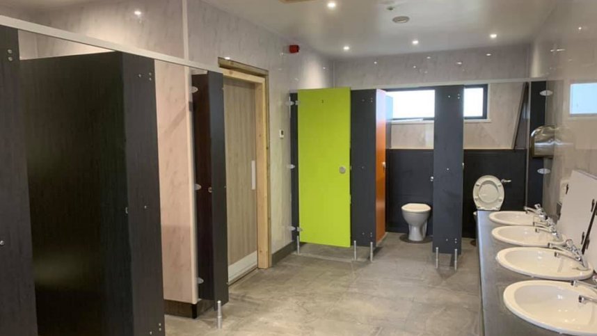 One purpose built, clean block in a heated building. Unisex en-suite style shower rooms with free showers. Accessible Facilities. Family bathroom with a baby area. Laundry. Drinks/snacks vending machines in reception. Play area. WiFi throughout (charged).