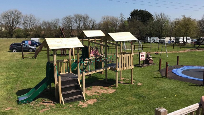 Amenities on site include a well equipped, partially fenced play area and activity centre which includes an aerial ropeway. A football field is located at the very end of the site. No kite flying or washing lines are allowed on the site.