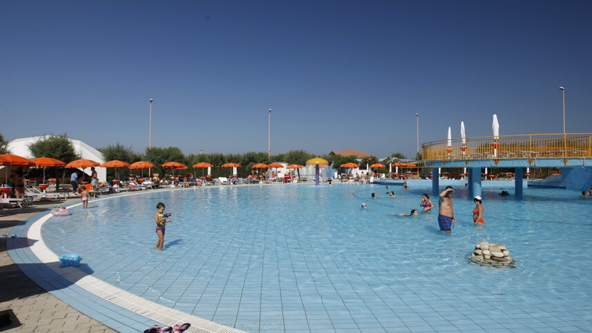 Sanitary facilities with accessible facilities,. Laundry. Shop. Bar, restaurant (1/6-31/8). Snack bar. Pizzeria. Cafe/bar. Swimming pools for adults and children. Wellness centre. Playground. Sports field. Tennis courts. Beach volleyball. Bowls. Table tennis. Archery. Riding. Cycle paths from site. Entertainment for adults and children (June-September). Amphitheatre. First aid point. Charcoal barbecues not permitted. WiFi throughout (free).