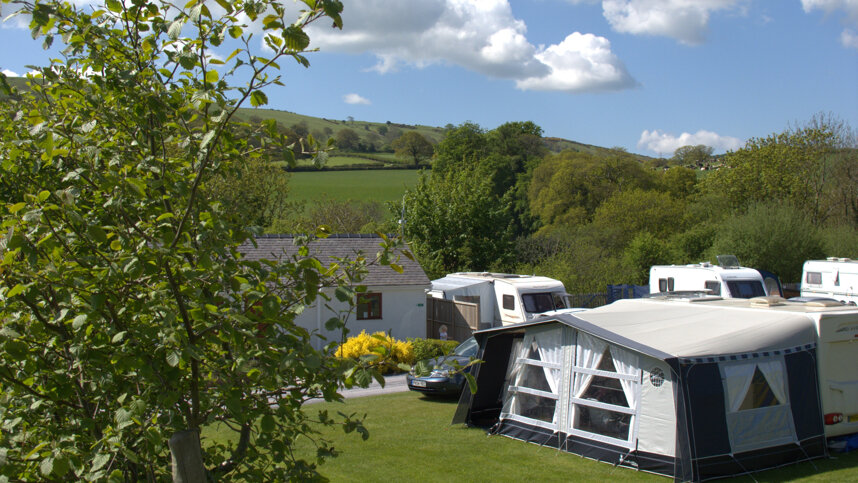 Siân and John have created an attractive and welcoming terraced site behind a former working farm. Situated on the edge of the Snowdonia National Park, Plas Farm perfectly blends the campsite into the beautiful surrounding countryside with different views afforded from each of the terraces. From the bottom terrace a woodland walk circles the site and is used as a dog walk. The 50 pitches all have 10/16A electric hook-ups and 46 are fully serviced. On a separate field there is provision for 30 tents, some with electricity.