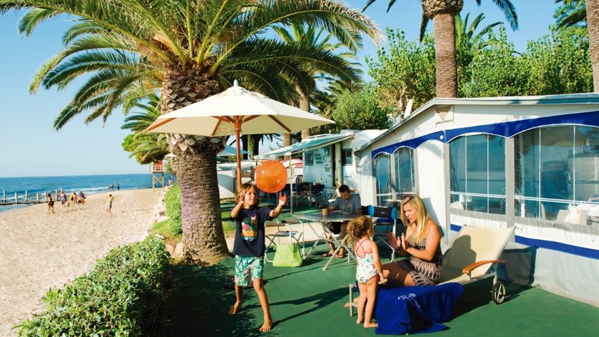 Playa Montroig Camping Resort is about 30 kilometres from Tarragona, set in its own tropical gardens with direct access to a very long, narrow, soft sand beach. The central part of the site lies between the sea, road and railway (as at other sites on this coast, with occasional train noise on some pitches) with a huge underpass. Aside from a wide range of excellent facilities, notably an impressive aqua park and dining options, Port Aventura theme park is 20 km away, making this a highly desirable location for many families.