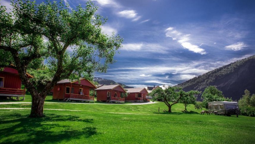 Sandvik is a compact, small site in Gaupne, close to the Nigardsbreen Glacier and the spectacular Rv55 high mountain road from Lom to Sogndal. It provides 50 touring pitches, 48 with electrical connections (8/16A), arranged in an orchard setting either side of a road. A large supermarket, post office, banks and tourist information are all within a level 500 m. stroll. A café in the reception building is open in summer for drinks and meals and the small shop sells groceries, ices, soft drinks and sweets. Fjord fishing is nearby, as are guided tours of the Nigardsbreen and Jostedalsbreen glaciers.