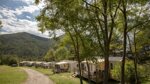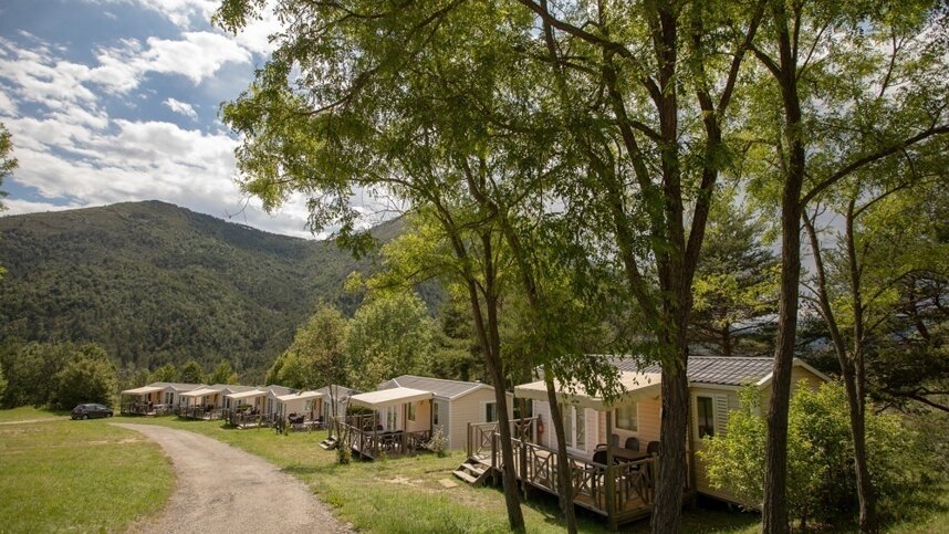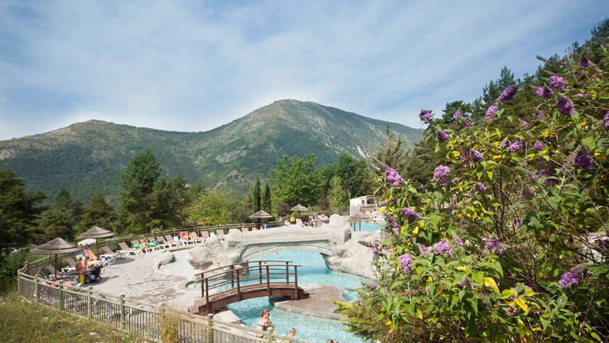 RCN, a Dutch company, runs a chain of nine good campsites in the Netherlands. They also operate eight sites in France, all with Dutch managers who speak good French and English. Les Collines de Castellane is pleasantly situated in the mountainous landscape of the Alpes-de-Haute-Provence. There are 160 touring pitches (with 10A electricity) spread over a series of flat terraces and most have shade provided by trees. Access roads are very steep and it is quite a long way down to the bottom of the site. At the top of the site, near the entrance, is a combined reception and attractive bar/restaurant area overlooking the pool complex with its water slides and a paddling pool for small children.