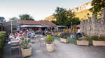 The fully equipped toilet blocks are well appointed and include accessible facilities. Fridge hire. Well stocked shop including many regional specialities, attractive bar, restaurant with large screen TV, pizzeria and takeaway (all season). There is some fairly steep up-and-down walking from furthest pitches to some facilities. Heated outdoor swimming pools with lazy river (all season). Minigolf. Play area. Activity programme. Bicycle hire. All-weather multisports pitch. Torch useful. WiFi over site (free). Motor home service point. Chemical toilet point. Boules pitch. Defibrillator.