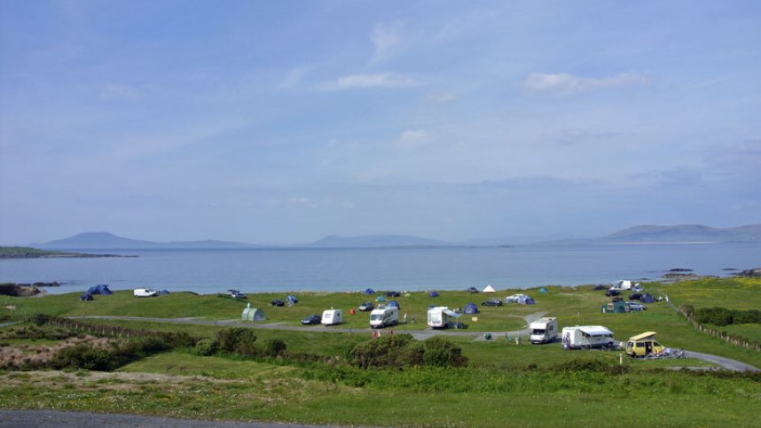 Renvyle Beach Caravan and Camping Park is a family-owned site since 1967 by the current owner's father. The Campsite is located on the edge of the Atlantic Ocean with views of Clare Island, Inishturk, Achill, Mweelrea and Croagh Patrick. It has direct access to its own sandy beach, one of the most beautiful beaches in Connemara. Dolphins can often be seen from the shore.