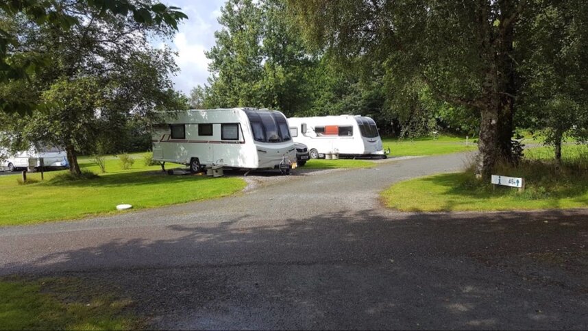 This is a small, level park close to Loch Alsh with a wooded hillside behind (crisscrossed with woodland walks). Set mainly on well-cut grass, it is sheltered from the prevailing winds by the hill and provides just 45 numbered pitches. There are 10A electrical connections and 35 hardstandings (two without electricity). Tents you can stand in are not accepted. Small tents are permitted at the owner's discretion, so it would be advisable to telephone first if this affects you.