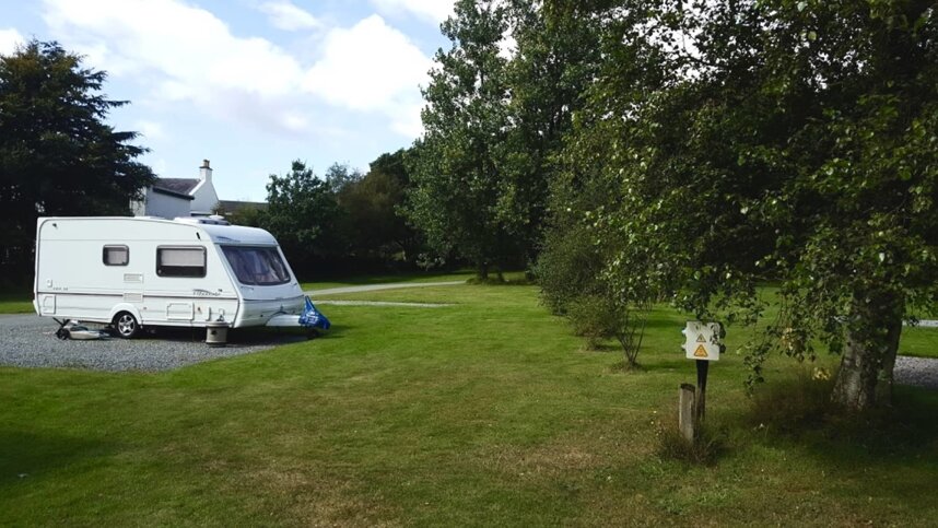 Awnings are not permitted during July and August to protect the grass. The ground can be stony, so rock pegs are recommended. Reraig makes a good base from which to explore the Isle of Skye and the pretty village of Plockton with palm trees (remember Hamish Macbeth on TV?)