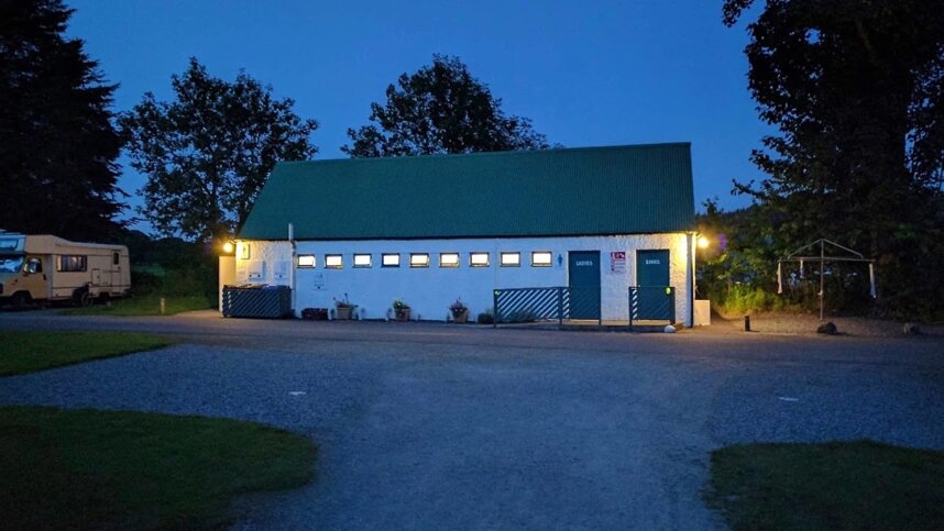 The single sanitary block is kept immaculately clean. Children have their own low washbasins. Controllable hot showers accept free tokens for guests (1 token for 2 minutes). Sinks for laundry and dishwashing. A slope replaces the small step into the ladies and sink rooms. Motorhome drainage point. WiFi throughout.