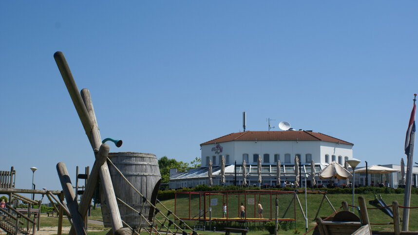 When staying on this interesting site, which is part of a resort complex, you know you are on holiday. The site is situated at the end of a peninsula, on a low lying spit of land and overlooks wild stretches of open water and the River Maas. There are 220 pitches, 88 of which are for touring. All have electricity (6-16A), water and drainage, are level, grassed and many are waterside – no pitch lies more than 60 m. from the water. There are numerous cycling routes from the site, either directly overland or via the passenger/cycle ferry that crosses the Maas.
