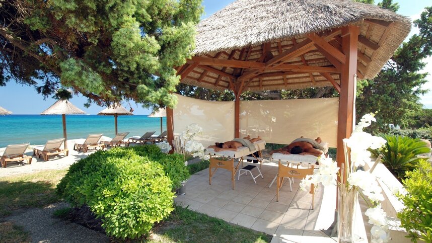 The vast fish-laden lakes are an excellent feature of this site, and a superb balnéotherapy centre offers the very latest beauty and relaxation treatments (men and women) based on marine techniques. An excellent, beachside restaurant offers a sophisticated menu and has superb sea views.