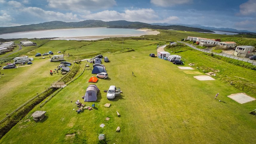 Privately owned mobile homes predominantly occupy the site but offer 26 touring pitches, 12 of which have concrete hardstanding, 10A electricity and water; the remainder are on grass without services. Every pitch on the park affords a view of Mulroy Bay and the surrounding rugged, varied scenery. An onsite café offers various ice creams, freshly brewed coffee, soft drinks & cakes. Nestled amidst breathtaking scenery, the idyllic beaches of Tra na Rossan and Murder Hole lie just a stone's throw from the site, providing an ideal haven for outdoor enthusiasts and those seeking tranquillity.