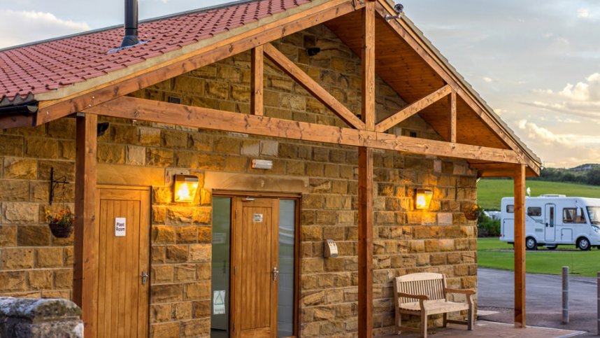 Heated sanitary block with Accessible facilities and family shower room, Children's playing field, Fenced dog exercise area, Washing up room, Laundry facilities, Chemical toilet disposal, Pets allowed, WIFI, Golf nearby.