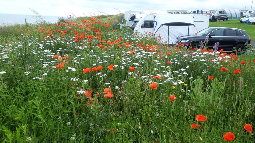 This is an adults-only park on the outskirts of Mundesley-on-Sea. One of the only clifftop parks with space for touring units on this coastline, there are panoramic views from most pitches. All 28 pitches have 10A electricity and TV aerial hook-ups. The unmarked pitches are arranged on an unshaded sloping meadow, so levelling blocks are advised. There is no reception for the touring area so visitors need to pre-book a pitch of their choice. Primarily a caravan holiday home park, there are mobile homes to rent. The facilities are well maintained but some distance from the pitches. Access to the Blue Flag beach is via a large tarmac ramp. Site roads and touring pitches have been resurfaced to provide mostly hardstandings.