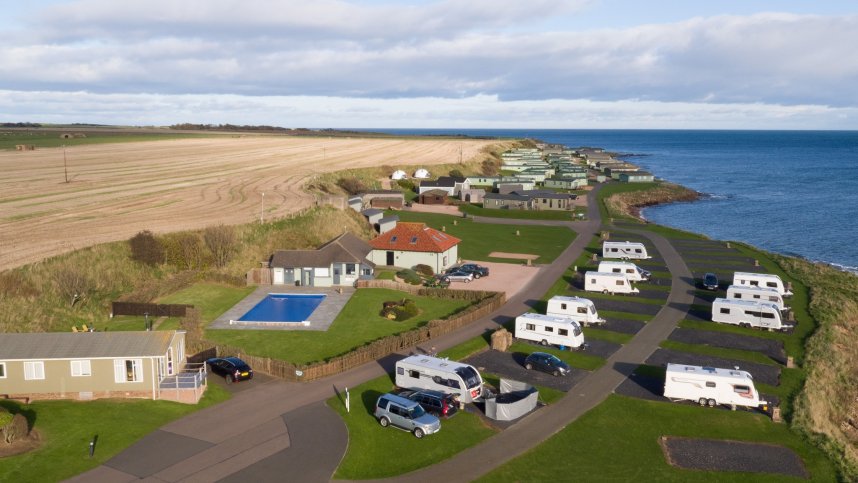 Sauchope Links Park is a member of the Largo Leisure Parks group with a good range of facilities on offer, notably a heated swimming pool, an indoor recreation room and a play area for children. The coastal location is very attractive with miles of rocky shore to be explored and the Fife Coastal Path traverses the site. Pitches here are grassy and of a good size. A number of fully serviced pitches are available and also hardstandings. Sea front pitches provide views of the Isle of May. Alternatively, a number of mobile homes and micro lodges (small wooden chalets) are available to rent.