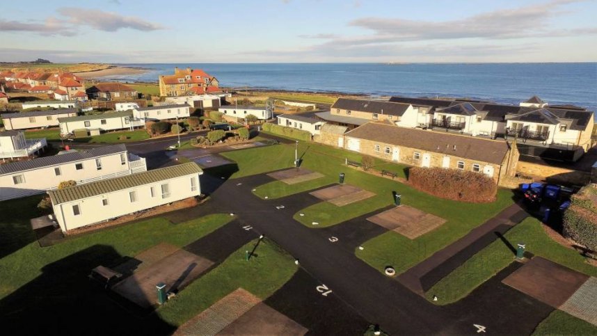 The park is situated just across the road from the sea with its rock pools. The park provides lodges, caravan holiday homes and apartments to rent (or buy) and pitches for just 20 touring units (no tents). All the pitches have concrete squares, water, waste, sewerage and 16A electricity (but unfortunately none have sea views). The large park is attractively landscaped with gardens, pools and a stream among the privately owned holiday homes which are set apart from those to rent. The adjacent Ocean Club’s facilities include a 20 m. swimming pool and children’s pool. Small gates give immediate access to Seahouses with its excellent range of shops and eating places.
