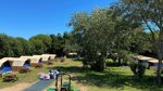 The campsite is a twenty-minute uphill walk from the harbour, although your luggage will be transported for you. There are several ready-erected tents to rent; they are fully equipped except for bedding and lighting, which are not included. Unfortunately, there is no option to use your own equipment.