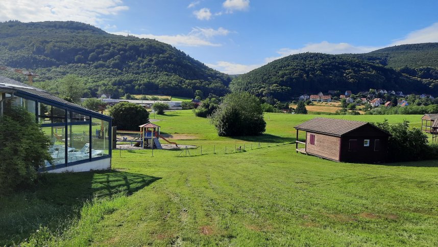 This is an attractively situated, inexpensive site, amidst the mountains and forests of northern Alsace, not far from the German border. There are good views over the valley to one side and the pretty village with trees sheltering the other. The circular internal road has pitches around the outside (139 for touring units, 15 for seasonal units, 39 accommodation units to rent), and space in the centre where there is a playground. The solar-heated swimming pool and children’s pool are of excellent quality. A Centre de Vacances provides a covered swimming pool, sauna and fitness room.